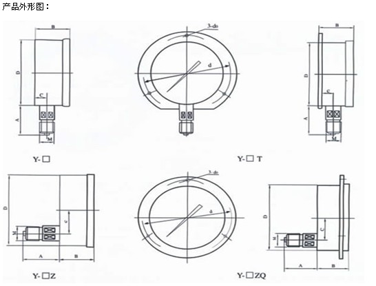 Y-100B-F Y-100B-FZT Y-150B-F Y-150B-FZT | 0~0.06、0.1、0.16、0.25、0.4、0.6、1、1.6、2.5、4、6、10、16、25、40、60、100、160、250 -0.1~0、0.06、0.15、0.3、 0.5、0.9、1.5、2.4 (-30″~0.15、30、60、100、150; 0~15、30、60、100、200、300、400、600、800、1000、1500、2000、 3000、4000、6000、10000) | 1.6 |