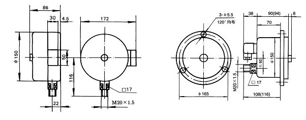 抗振型 | YNXC-100 YNXC-100Z YNXC-100ZT YNXC-150 YNXC-150Z YNXC-150ZT | 磁助電接點 壓力表 | 0~0.6至60 及-0.1~0.5至2.4系列 | 1.5 | 1.5 | 5 |